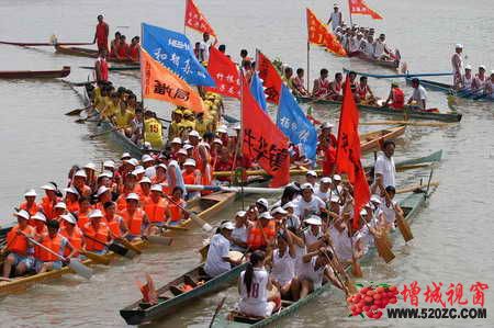 “增江水悠悠,龙舟争上游……”这是著名歌唱家吕薇演唱的介绍增城的歌曲《水悠悠,乐悠悠》中非常优美的歌词,所描写的就是增城新塘镇赛龙舟的景象.新塘镇赛龙舟有着悠久的历史,据《增城县志》记载,自宋朝以来就有赛龙舟的习俗,‘五月则滨江村乡多备龙舟以端午前后数日竞渡……好事者具锦标酒食以赏胜者,旌旗招展,甚是可观.”其久远的历史渊源和厚重的文化底蕴,赋予了这古老的赛龙舟习俗独具一格的民俗文化特色,在经历了千年风雨洗礼之后,依然长盛不衰,散发出新的活力.