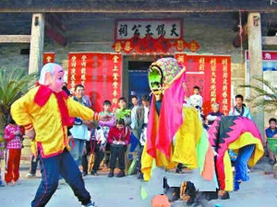 “貔貅象征吉祥和财富。”派潭镇前任文化站站长张淀渊告诉记者:“貔貅舞和舞狮相似,也是由两个人合作完成,最大不同是貔貅的头面部和醒狮差异大,面目狰狞。在貔貅舞里面,一开始貔貅是恶兽,被人降服后变成了瑞兽,表达吉祥和瑞的意思。”不过,张淀渊说,现在的年轻人都进城打工,受多元化文化的影响,已经远离了传统的客家文化。“他们更向往现代的东西。因此,他们对这种民间艺术表演以及貔貅的象征意义都已经不感兴趣了。”