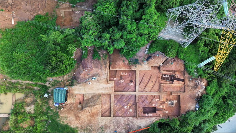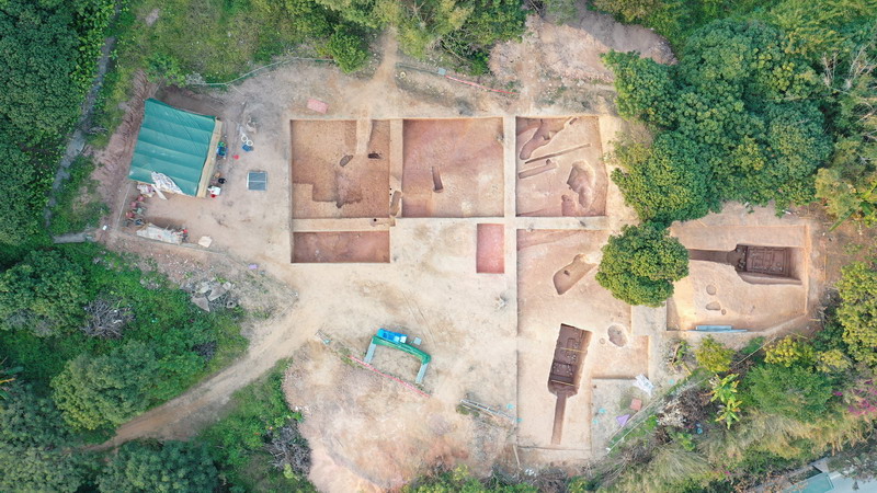 | 老虎岭遗址位于广州市增城区仙村镇沙滘村东北部,东距西福河不到100米,南距东江约1公里。该遗址的南部及西部分别于2005年和2022年经过考古发掘,本次考古发掘的范围为遗址的东部。为配合国有建设用地收储出让,经国家文物局审批,本院对土地出让范围的老虎岭遗址(遗址东部)展开了配合性考古发掘。完成发掘面积600平方米,共清理商时期的灰坑9个、沟2条、柱洞27个,另清理西汉晚期至东汉早期墓葬2座、明墓2座,出土陶器、铜器、石器、珠饰等各类文物154件(套)。 增城区老虎岭遗址(一期) 两座汉墓均为带斜坡墓道的长方形竖穴土坑木椁墓,规模较大,保存较完整,出土器物较丰富。其中西汉晚期墓M10由墓道、木封门、封门柱、前室、后室、腰坑等组成。墓室长5.4、宽2.4-2.7、深1.64-1.72米,墓室内棺椁已朽无存,但板痕清晰,可辨认木封门、封门柱、棺痕及椁痕,在后室椁板下发现一近方形的腰坑,坑内出土印纹硬陶的陶瓮1个。 东汉墓M13由封土、柱洞、墓道、前室、后室组成。封土呈覆斗形,平面为椭圆形,长10.02、宽7.68、厚0.52米,分两层,位于墓口之上;在封土之上分布有9个柱洞,推测为该墓地上建筑的结构。墓道的斜坡约为12°,内填土为五花夯土,分15层进行夯打形成。墓室分前、后室,后室比前室高0.5米。在后室椁室后部发现保存较完整的墓主遗骸3具,根据棺痕判断其分别葬于三具木棺内,葬式均为仰身直肢葬,初步其性别为一男两女。该墓出土器物达52件(套),以陶器为主,另外还有15件青铜器。 此外还发现了商时期的灰坑、沟、柱洞等遗迹,出土了较丰富的陶片和双肩石斧、石锛、石镞、砺石等石器,陶片以泥质陶为主,少量夹砂陶,陶色有灰色、黑色、红褐色,器型有罐、尊、釜、豆等,多为素面,部分有绳纹、篮纹、曲折纹、云雷纹、菱格圆点纹等。 本次考古发掘的M10首次在广州地区的汉式墓葬中发现典型越文化的腰坑,其前后室结构及器物组合与《广州汉墓》中M3018接近,推测其年代应为西汉晚期,该墓对研究西汉中晚期越人汉化、汉越交融的历史具有重要意义。其次M13的封土、柱洞等地面结构的发现对研究汉墓形制结构具有重要价值,同时该墓出土了保存较完整的3具墓主遗骸,为岭南地区的古代葬俗、人群迁徙等研究提供了重要的实物资料。此外商时期丰富的遗迹遗物的发现对研究增江流域先秦文化交流具有一定意义。 增城区老虎岭遗址(二期) 增城区老虎岭遗址位于广州市增城区仙村镇沙滘村东北部。根据文物保护法规,配合国有建设用地收储出让,广州市文物考古研院于2020年10月-11月对增城经济技术开发区仙村园区北区老虎岭地块范围进行考古勘探,发现墓葬、灰坑等古代文化遗存。经报国家文物局批准,广州市文物考古研究院对遗址进行了配合性考古发掘,完成发掘面积600平方米。 发掘清理墓葬8座(其中东汉墓2座、清墓2座、年代不明的墓葬4座)、灰坑14个、沟5条、柱洞37个、窑址8座、灰坑6个,出土陶器、铜器、石器、珠饰等各类文物119件(套),采集标本14件、陶片95袋。两座东汉墓均为木椁墓,规模较大,其中M1平面呈“凸”字形,方向195°,墓葬包括墓道、前室和后室三部分,墓圹总长10.8、宽0.8-2.8、深0.8-2.6米。 墓道平面呈长方形,长4.4、宽0.8-0.9米,深1.25米,两侧壁垂直约平整,底部约平,为南高北低呈斜坡状,坡度18°。前室与墓道之间有2级生土台阶,前室呈长方形,长2.55、宽2.6、深2.6米。后室平面呈长方形,比前室高出0.4米,后室南北长3.8、宽2.5-2.55、深2.2米。后室内棺椁已朽无存,仅残存朽痕。出土陶罐、匏壶、陶鼎、陶囷、陶屋、三足釜、环首刀、青铜鼎、青铜钺、铜铙、水晶珠等器物52件(套)。 此外还发现了商周时期的灰坑、沟、柱洞等遗迹,出土了较丰富的先秦时期陶片和双肩石斧、石锛、石钺、砺石等石器。本次考古发掘的两座东汉木椁墓规模较大、出土文物较丰富,为广州东部地区古代葬俗提供了较重要的实物资料。此外还发现了商周时期的灰坑、沟、柱洞等遗迹和较丰富的先秦时期陶片、石器,与围岭遗址年代接近、关系密切,具有较高的历史和文化价值。 |